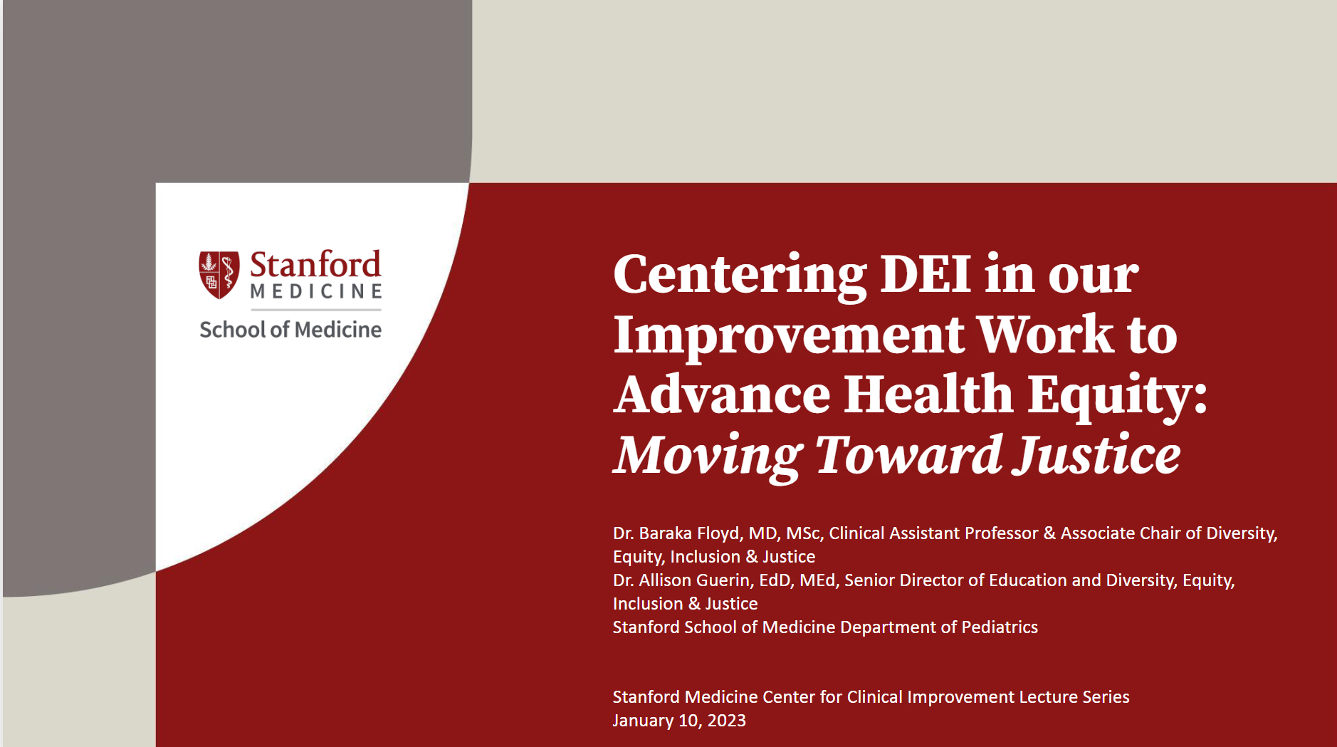 Centering DEI in our Improvement Work to Advance Health Equity: Moving Toward Justice