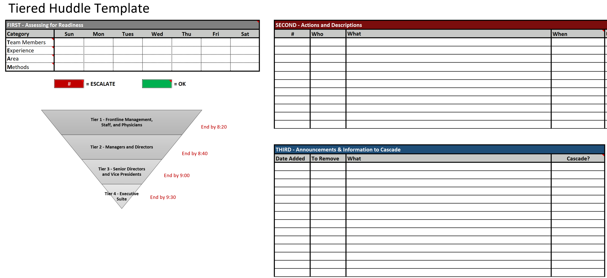 This is a daily management tool to organize tiered huddles to ensure patient safety and appropriately escalate problems.
