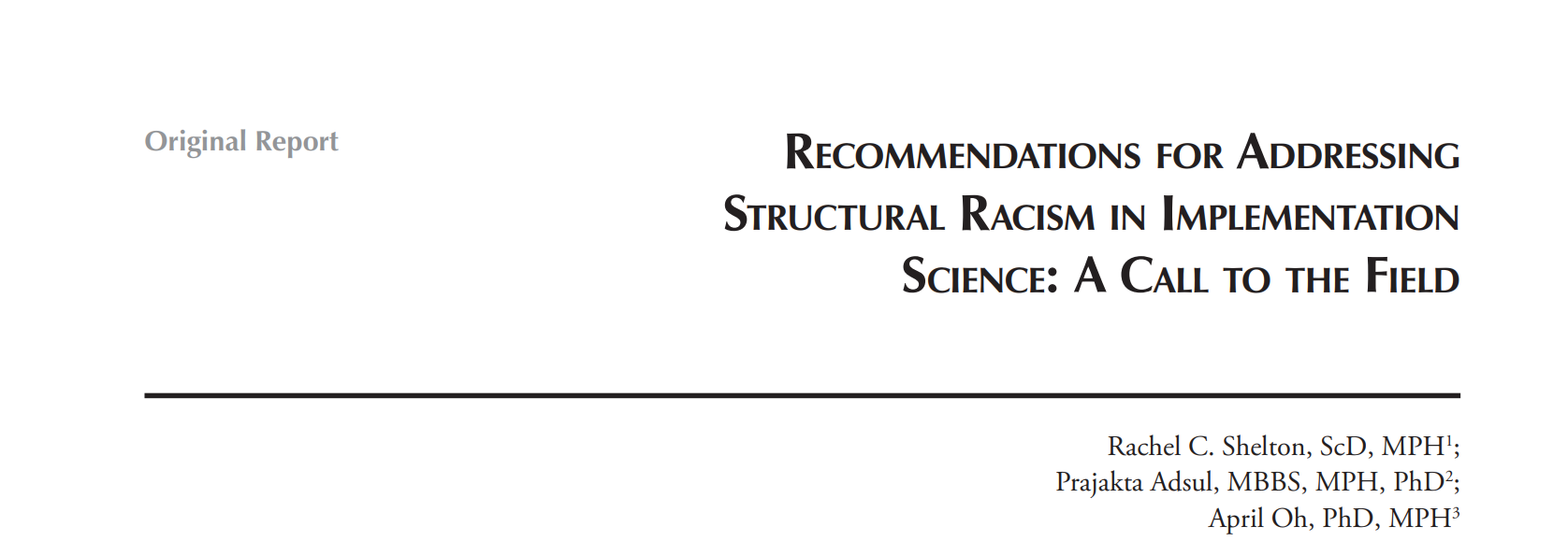 This paper discusses structural racism and its interplay with other forms of racism (cultural, individual, internalized) as it impacts health equity. Emphasizing that IS needs to incorporate a focus on recognizing and addressing this issue as a core driver of inequity, the paper offers three recommendations for IS researchers to consider.
