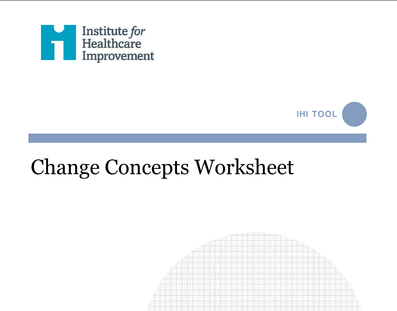 This tool is useful in brainstorming ideas for improvement. The template consists of 72 change concepts split into 9 groups including systems to avoid mistakes, ideas for managing time, ideas to optimize the environment. For each section, the group will generate a list of ideas to address the specific issue and rank them in order.