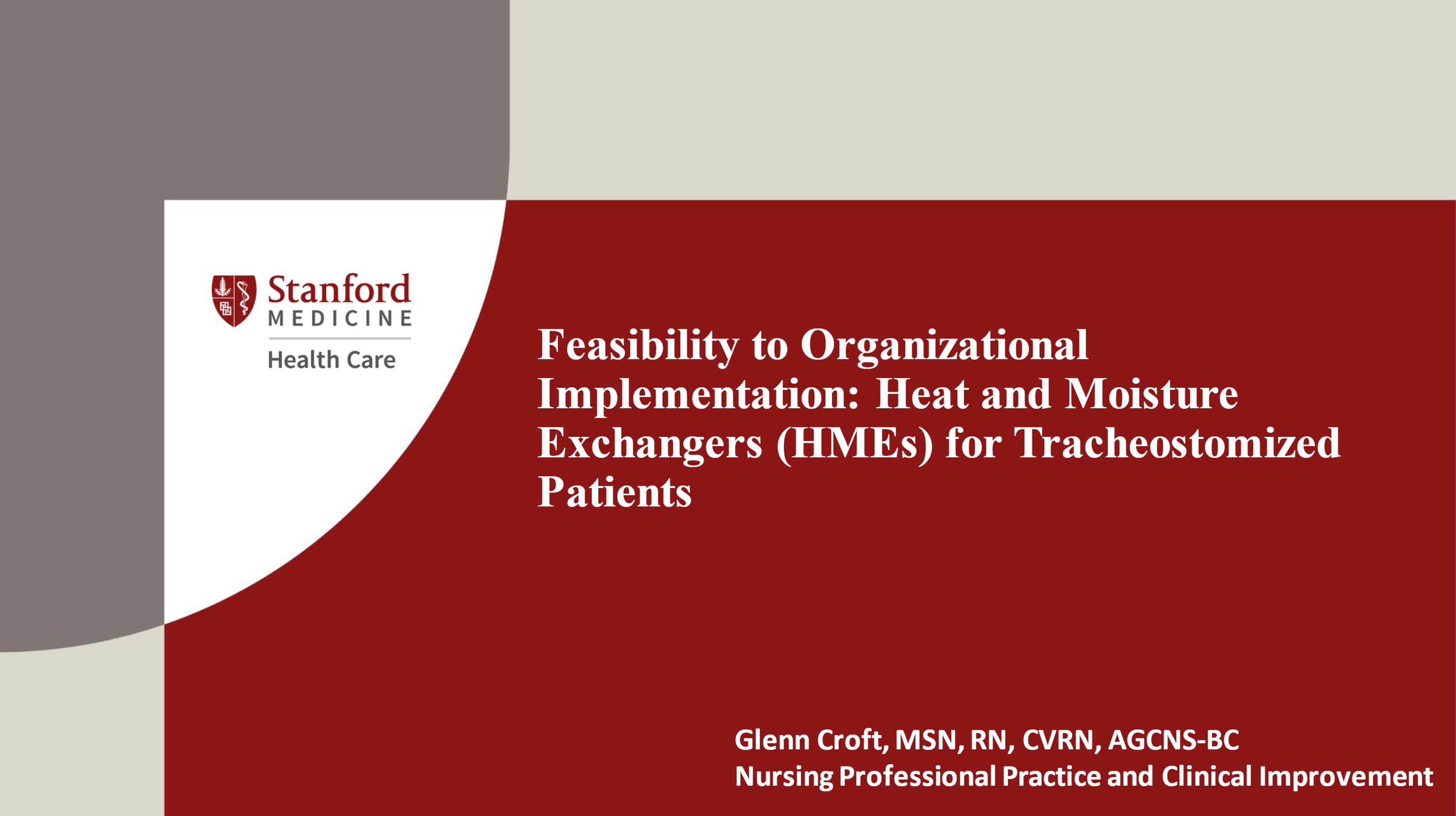 This lecture will explore one means by which to translate a patient improvement idea from feasibility to organizational implementation. This will be demonstrated using a heat and moisture exchanger for tracheostomized patients that was introduced at SHC by means of a Clinical Effective Leadership Training (CELT) program. During and after CELT, I spearheaded movement towards organizational implementation utilizing implementation science. My intent is to empower others with strategies to translate evidence into practice.