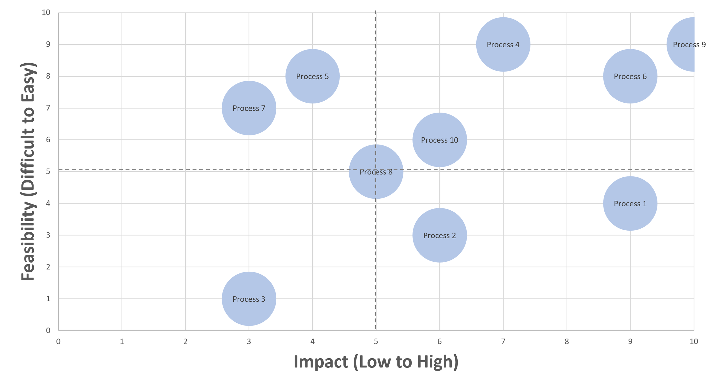 This is a prioritization matrix template used to score processes in terms of feasibility vs impact. Helps score root causes or solutions to help identify where to focus intervention.