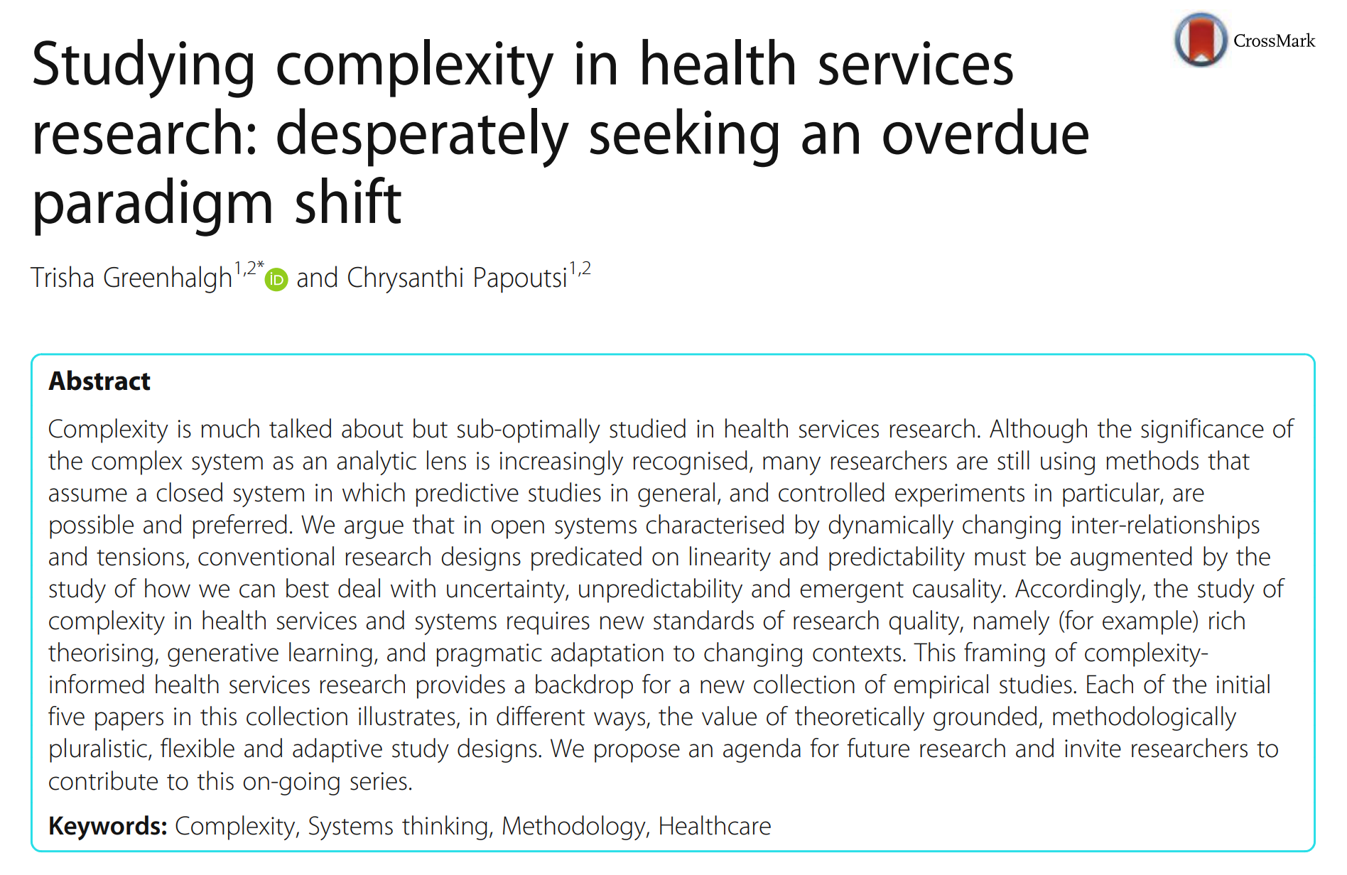 Studying complexity in health services research: desperately seeking an overdue paradigm shift